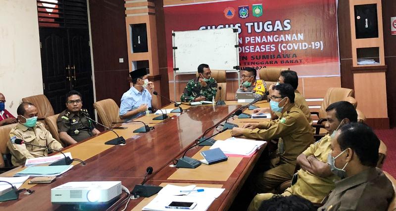 Wabah virus corona atau covid-19 sudah menjadi momok bagi masyarakat termasuk NTB. Berbagai upaya dilakukan baik pemerintah maupun TNI Polri serta instansi terkait dalam penanganan dan pencegahan virus corona. Senin (6/4) hari ini, di ruang rapat Hasan Usman Lantai I Kantor Bupati Sumbawa dilaksanakan rapat percepatan penanganan Covid-19 yang dihadiri Sekda Sumbawa dan Forkopimda Kabupaten Sumbawa beserta Kepala OPD Pemda Sumbawa.