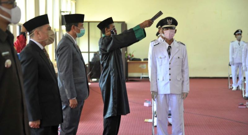 Hal lain yang ditekankan Bupati, bahwa sebagai pemimpin penyelenggaraan pemerintahan desa, Kades merupakan pengambil keputusan sekaligus penanggung jawab setiap kebijakan yang akan diambil dan dilaksanakan oleh pemerintah desa. Sesuai ketentuan, maksimal 3 bulan setelah dilantik, Kades harus segera menyusun rencana pembangunan jangka menengah desa (RPJMDes) untuk jangka waktu 6 tahun ke depan, yang ditetapkan dengan peraturan desa dan memuat visi misi, tujuan, strategi, serta kebijakan dan program. Selanjutnya dari RPJMDes tersebut pemerintah desa harus menyusun rencana kerja pembangunan desa (RPKDes) untuk jangka waktu 1 tahun, yang memuat kerangka program, prioritas pembangunan desa, rencana kegiatan dan pembiayaan. Dan sebagai implementasinya, yaitu APBDes yang harus dikelola berdasarkan asas transparan, akuntabel, partisipatif, serta dilakukan dengan tertib dan disiplin anggaran. Selanjutnya, Kades mampu memahami kondisi wilayahnya masing-masing. Desa harus memiliki data yang jelas dan valid mulai dari data berapa warga miskin di desanya, data potensi wilayah, serta data-data lainnya. Dengan data ini kades maupun aparatur desa lainnya akan mudah dalam menjalankan roda pemerintahan desa serta membina masyarakatnya. “Selamat bertugas, jabatan adalah amanah, karena itu pemegang jabatan harus betul-betul berbuat yang terbaik bagi masyarakat yang dipimpinnya, karena kelak akan dimintai pertanggungjawaban oleh Allah SWT,” tutup Bupati. (JEN/SR)