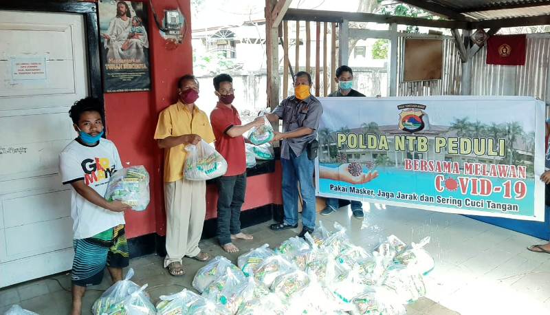 Sebanyak 50 orang mahasiswa asal luar daerah yang tidak mudik, mendapat bantuan paket sembako dari Polda NTB. Para mahasiswa yang berada di Sekretariat Perhimpunan Mahasiswa Katolik Republik Indonesia (PMKRI) Mataram, Jalan Lely 10 Lingkungan Karang Taruna Kelurahan Monjok Barat, Kecamatan Selaparang, Kota Mataram ini, tidak terakomodir dalam Program Jaring Pengaman Sosial (JPS) Gemilang. Dalam menyalurkan bantuan dengan tajuk “Bakti Sosial Polda NTB Peduli Bersama Melawan Covid-19” tersebut dipimpin Dir Intelkam Polda NTB. Bantuan 50 paket ini diterima oleh Sekretaris PMKRI Mataram, Gerardus Umbu Pati (Mahasiswa Universitas Saraswati Mataram). Satu paket berisi 5 kg beras, 10 bungkus Mie instans dan 1 liter minyak goreng.