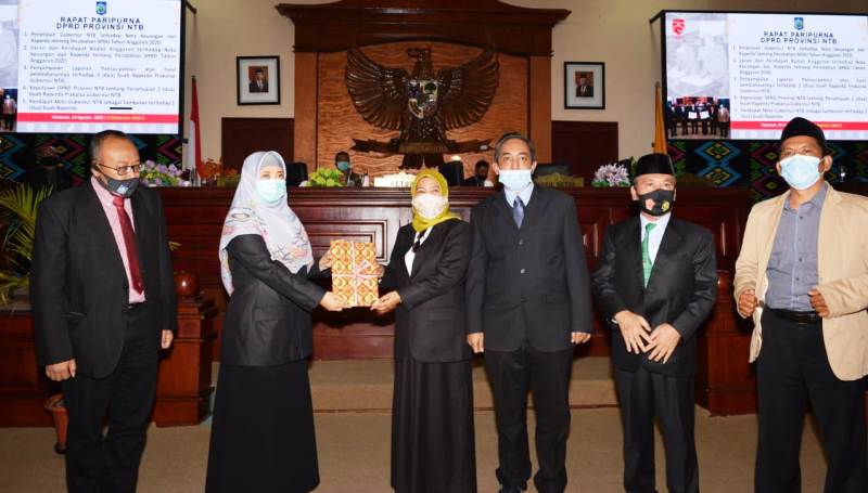 Rapat Paripurna di Kantor DPRD Provinsi NTB menghasilkan persetujuan terhadap dua Raperda prakarsa Gubernur, yakni Raperda tentang Hasil Pengelolaan Kekayaan Daerah Yang Dipisahkan dan Raperda tentang Perubahan atas Perda Nomor 5 tahun 2011 Tentang Perseroan Terbatas Gerbang NTB Emas (GNE), Senin 24 Agustus 2020. “Fraksi-fraksi yang tergabung dalam pansus dewan, telah menyampaikan laporan terhadap hasil pembahasan kedua buah raperda prakarsa eksekutif, kita juga telah mendengar bersama persetujuan DPRD Provinsi terhadap dua buah raperda prakarsa eksekutif ini,” ungkap Wakil Gubernur NTB, Dr. Hj. Sitti Rohmi Djalilah.