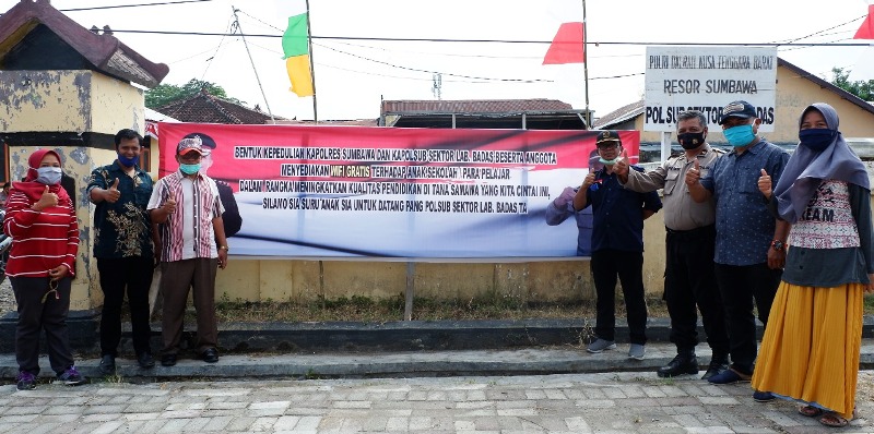 Berbagai kesulitan dialami masyarakat di masa pandemic Covid 19 ini. Salah satunya proses belajar mengajar yang mengharuskan para siswa Belajar Dari Rumah (BDR) yang sampai sekarang masih berlanjut. Untuk BDR ini siswa dipaksa melakukan pembelajaran melalui sistem online (Daring) dengan istilah Zoom Meeting. Namun mirisnya masih banyak anak sekolah kurang beruntung yang tidak dapat mengikuti pembelajaran online karena keterbatasan ekonomi, bahkan ada yang harus bekerja keras untuk membeli “kuota internet” agar bisa mengikuti pembelajaran. Meski diakui sekolah sudah menyiapkan anggaran khusus untuk itu tapi tidak maksimal. Keluhan ini kerapkali terdengar di tengah masyarakat. Menjawab persoalan tersebut Polsubsektor Badas Polres Sumbawa menyediakan wifii yang bisa diakses secara gratis oleh siapapun untuk membantu para pelajar. Wifii gratis ini dilaunching, Kamis (13/8) pagi di Polsubsektor Badas yang dihadiri masyarakat dan para tokoh setempat. “Kami mendengar keluhan di tengah masyarakat yang memang merasa terbebani dengan adanya pembelajaran via online yang tentu saja membutuhkan Kuota Internet ini. Kami ingin meringankan beban orang tua yang putra putrinya masih duduk di bangku sekolah,” ungkap Kapolsubsektor Badas IPDA Abdul Muis. “Ini juga cara polri meningkatkan kualitas pendidikan di Kabupaten Sumbawa. Sehingga anak anak kita yang kurang beruntung ini tetap bisa mengikuti pembelajaran via online seperti teman teman lainnya,” tambahnya.