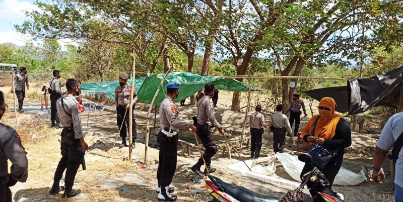 Anggota Satuan Sabhara Polres Sumbawa kembali menggerebeg arena judi sabung ayam, Kamis (13/8/2020). Setelah di Desa Labuan Kecamatan Badas dan Kecamatan Moyo Hilir, kini di Desa Maronge Kecamatan Maronge. Lagi-lagi, para pelakunya berhasil lolos dan polisi hanya mengamankan barang bukti berupa 2 jam dinding, selembar kain gelanggang dan 3 unit sepeda motor.