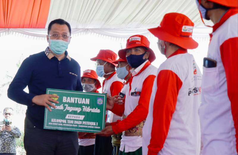Selain melakukan panen raya padi di Desa Aikmual, Kecamatan Praya, Kabupaten Lombok Tengah, Minggu, 23 Agustus 2020, Menteri Pertanian bersama Gubernur NTB memberikan bantuan alat pertanian hingga bibit kepada puluhan kelompok tani yang ada di Provinsi NTB. “Alhamdulillah sangat bersyukur, rasanya do’a saya selama ini baru dikabulkan,” ungkap Rahman salah seorang anggota kelompok tani penerima bantuan.