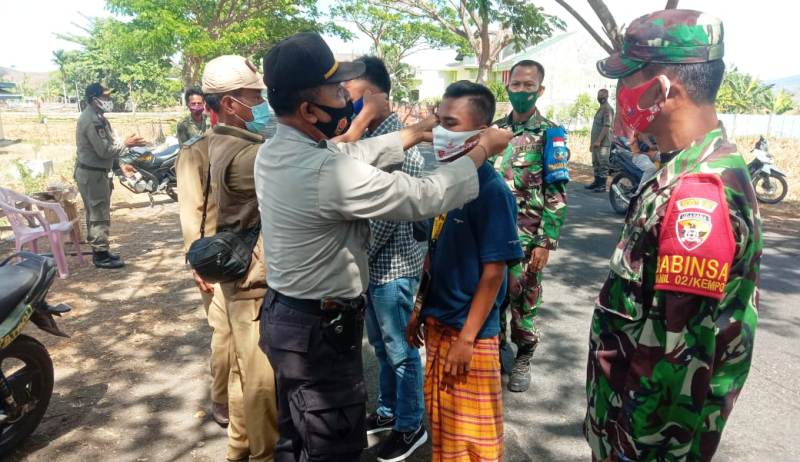 Tim gabungan yang terdiri dari Polsek, Koramil Kempo 1614-02 dan Pol PP Kecamatan Kempo, Senin (27/9) melakukan sosialisasi, razia penggunaan masker dan pembagian masker gratis. Selain itu, tim gabungan menghimbau pendukung Paslon Bupati dan Wabup (SUKA) yang ada di Kecamatan Kempo untuk tidak berangkat ke Kantor KPU dan Kantor Bawaslu Kabupaten Dompu demi menghindari kerumunan yang tidak sesuai dengan standard kesehatan covid19.