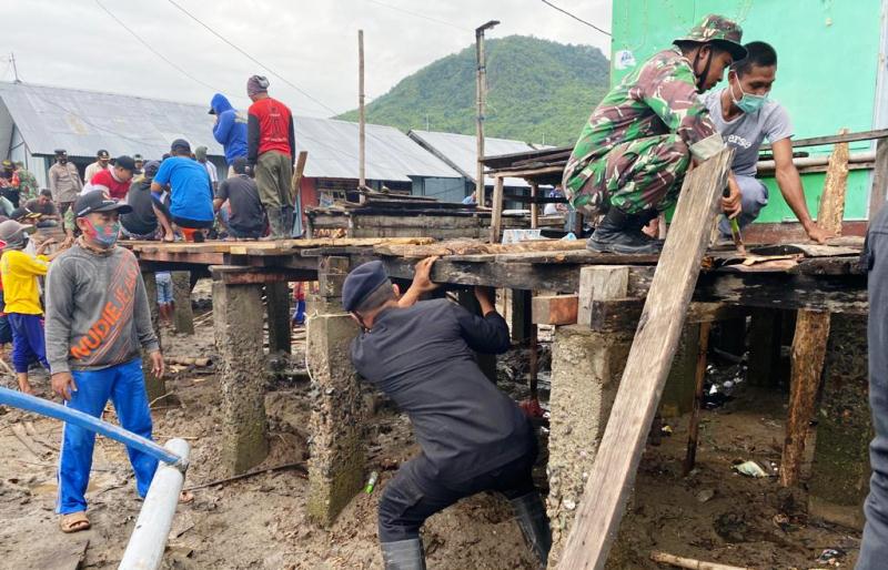 Usai sholat subuh, Sabtu (30/1/2021), warga bahu membahu membuat dan memperbaiki jembatan kayu yang menjadi salah satu akses penghubung warga untuk mencari rejeki di laut. Namun untuk memperbaiki jembatan yang berada di pinggir pantai itu tidak bisa dilakukan oleh warga semata, melainkan melibatkan banyak orang. Karena itu warga meminta bantuan Anggota Kompi 2 Yon B Pelopor Sumbawa Barat. Tanpa pikir panjang, AKP Sulaiman H Husain memenuhi permintaan para nelayan ini dengan menerjunkan 30 orang anggota untuk ikut bergotong royong bersama warga yang juga diback-up anggota TNI. Kegiatan gotong-royong yang dimulai dari pagi itu mendapat sambutan hangat dan antusias warga Lalar. “Kami sangat senang dan terbantu sekali dengan kehadiran bapakbapak dari anggota Brimob dan juga bapak TNI,” ungkap Kades Lalar.