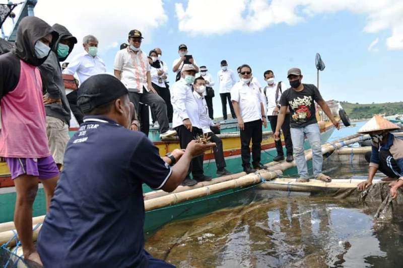 Dari Teluk Awang, Menteri dan Rombongan Menuju Telong Elong Lombok Timur, dimana kawasan tersebut merupakan salah satu pusat budidaya lobster terbesar di Lombok Timur.