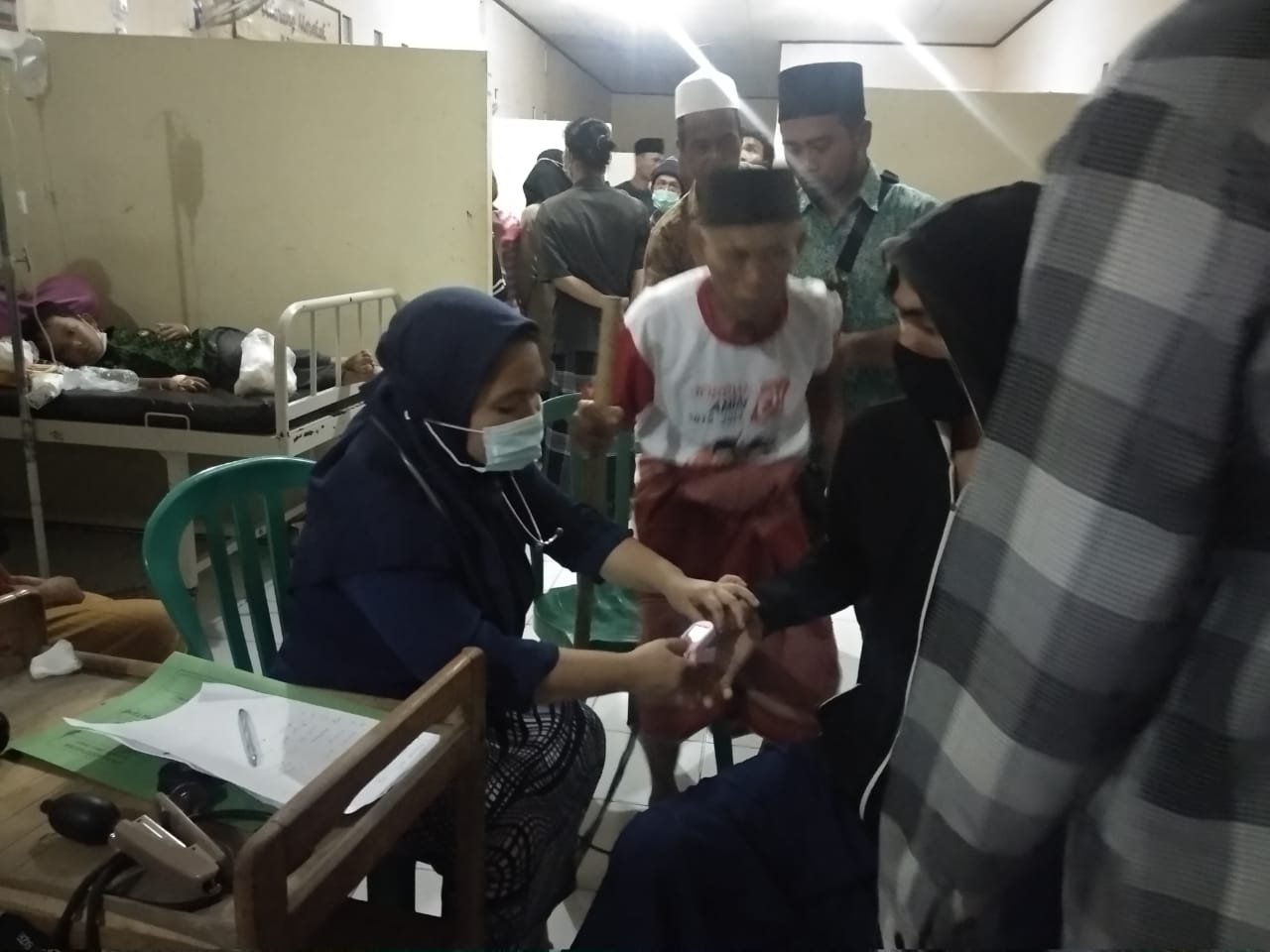 Warga yang datang ke puskesmas kemudian mendapatkan perawatan medis untuk menentukan kondisi pasien guna penanganan lebih lanjut, serta memberikan infus bagi warga yang mengalami muntah dan lemas.