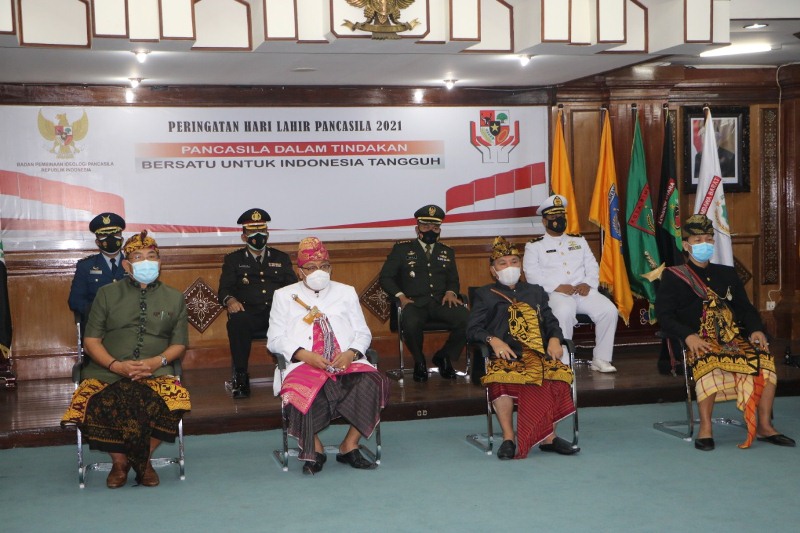 “Saya mengajak seluruh apara pemerintahan, toga, tomat, para pendidik, kaum profesional dan kaum milenial dan seluruh masyarakat Indonesia untuk bersatu padu dan bergerak aktif memperkokoh nilai-nilai pancasila dalam mewujudkan Indonesia maju yang kita cita-citakan,” tuturnya.