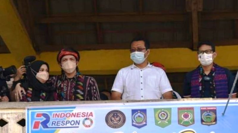 Menteri Pariwisata dan Ekonomi Kreatif RI, Sandiaga Salahudin Uno, didampingi Gubernur NTB, Dr. H. Zulkieflimansyah, SE., M.Sc, menyaksikan pacuan kuda atau dalam bahasa lokal Bima “pacoa jara” yang sudah menjadi tradisi masyarakat Bima.