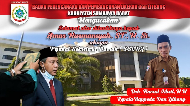 BAPPEDA SUMBAWA BARAT MENGUCAPKAN SELAMAT ATAS PELANTIKAN AMAR NURMANSYAH., ST., M.SI SEBAGAI PEJABAT SEKDA KSB Juli 27, 2021Juli 27, 2021oleh zensumbawa-640 Dilihatoleh zensumbawa SUMBAWA BARAT, samawarea.com (22 Juli 2021) Post Views: 640 Jangan LewatkanDikbud Sumbawa Perkuat Mitigasi Perundungan, Siapkan Pokja Lintas SektorHadiri Wisuda UT School–AMMAN di Jakarta, Bupati Sumbawa: Generasi Siap Kerja adalah Kunci Masa DepanDikbud Sumbawa Mantapkan Program Sekolah Tanggap Bencana, SMPN 2 Moyo Hulu Jadi ModelPerkuat Kesiapsiagaan Inklusif, BPBD Sumbawa Bentuk Unit Layanan Disabilitas BencanaHasil Reses Jadi Prioritas, Banmus DPRD Sumbawa Tetapkan Jadwal Paripurna