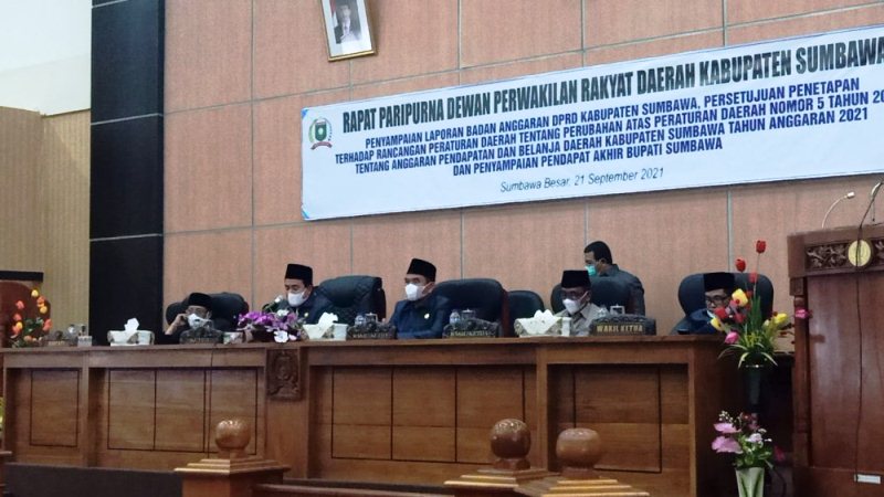 DPRD Kabupaten Sumbawa menyetujui penetapan Rancangan Peraturan Daerah Kabupaten Sumbawa tentang Perubahan Atas Peraturan Daerah Kabupaten Sumbawa Nomor 5 Tahun 2020 Tentang Anggaran Pendapatan dan Belanja Daerah Tahun Anggaran 2021 Menjadi Peraturan Daerah (Perda).