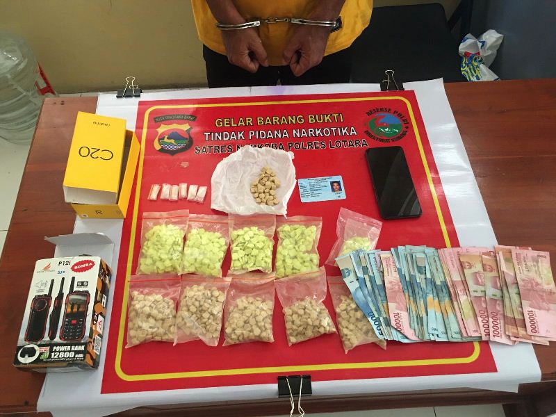 “Satu kotak HP Realme berisi 497 butir dan satu kotak HP Maxtron berisi 436 butir, yang semuanya diduga pil ekstasi, serta satu bungkus plastik berisi 6 klip kristal yang diduga sabu seberat bruto 6,29 gram, jadi total pil yang kami amankan keseluruhan adalah 975 butir,” jelasnya.