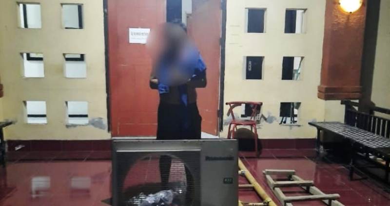 “Barang berupa AC tersebut telah dipisahkan satu persatu dan dimasukkan ke dalam karung, lalu dipindahkan oleh tersangka dengan mengangkat beberapa kali ke lokasi di pinggir jalan,” bebernya.