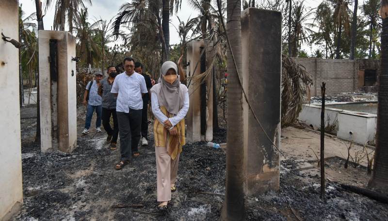 Gubernur NTB Dr. H. Zulkieflimansyah meninjau langsung lokasi kebakaran di Gili Trawangan yang menghanguskan belasan kamar Hotel Sunset Palm Resort. Kebakaran yang terjadi hampir membuat bangunan hotel rata dengan tanah.
