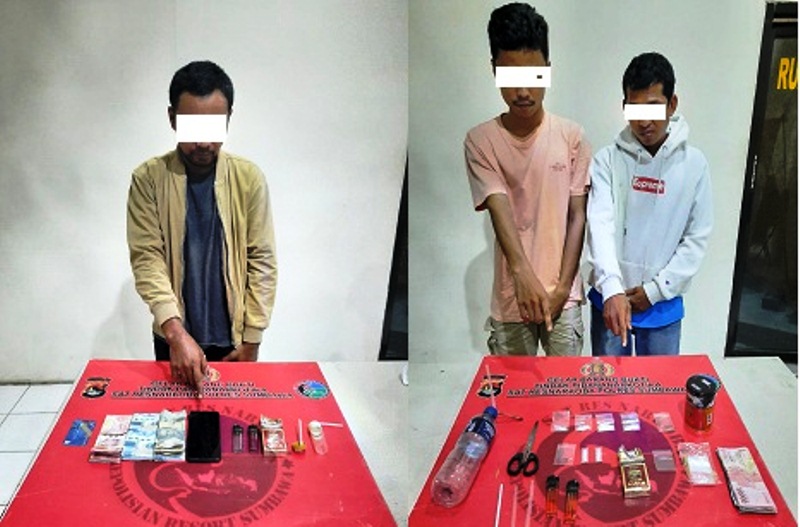 Dari penggrebekan ini, tim mengamankan tiga orang. Yaitu, KR alias Dani (34) dan RH alias Rudi (23)—keduanya warga Desa Gontar Alas Barat, serta MS alias Pri (37) warga Desa Mapin Rea Alas Barat.