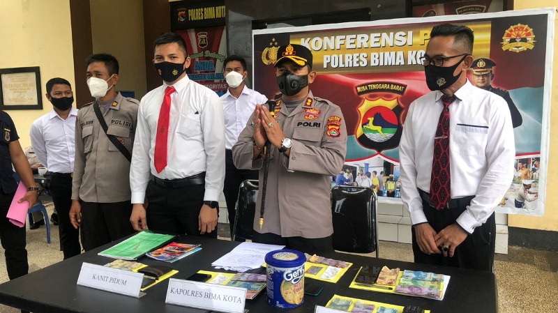 Kapolres Bima Kota AKBP Henry Novika Chandra, Senin (1/11) siang saat jumpa wartawan di Mako Polres setempat, menyebutkan, bahwa kelima penjudi ini berinisial SA (50) IRT asal Kelurahan Sadia Kecamatan Mpunda Kota Bima, DN (31) wanita dan ID (46) pria–keduanya asal Lingkungan Lela Kelurahan Jatibaru Kecamatan Asakota Kota Bima. Kemudian, RS (26) pemuda asal Kelurahan Jatibaru Timur Kecamatan Asakota dan AS (47) warga Lingkungan Dara Kecamatan Rasanae Barat.