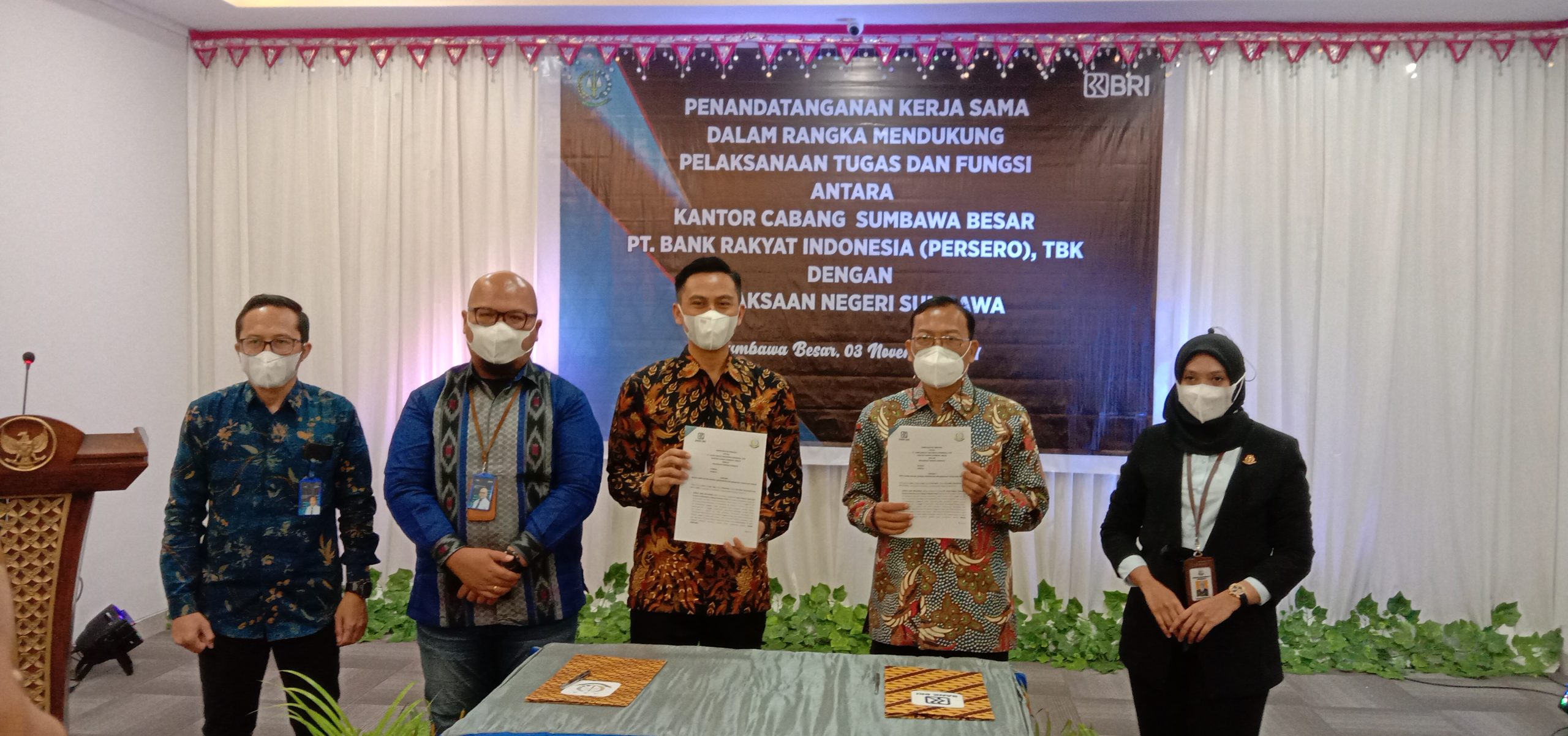 Bank BRI Cabang Sumbawa menjalin kesepakatan bersama dengan Kejaksaan Negeri Sumbawa. Kerja sama dalam rangka mendukung pelaksanaan tugas dan fungsi kedua belah pihak ini dikongkritkan dalam penandatanganan MoU yang berlangsung di Hotel Grand Samota, Sumbawa Besar, Rabu (3/11/2021).