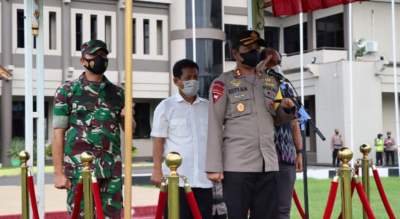 Apel dipimpin Kapolres Sumbawa, AKBP Esty Setyo Nugroho, S.IK., Dandim 1607/Sumbawa Lelkol Kav. Rudi Kurniawan, S.Sos., M.Tr (Han), Ketua DPRD Abdul Rafiq, SH., dan Sekda Drs. H. Hasan Basri, MM, serta diikuti semua unsur tim gabungan.