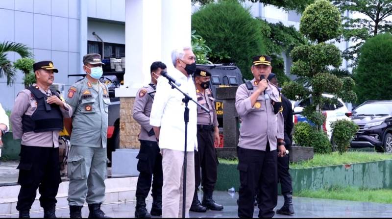“Selama upaya mendorong mundur massa aksi, personil pengamanan mendapatkan lemparan batu dari massa aksi dimana jarak antara massa aksi dengan personil pengamanan lebih kurang 50 meter,” ungkap Adib.
