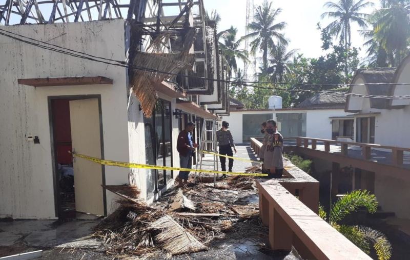 Sesaat kemudian kepulan asap tebal terlihat dari atap kamar hotel tersebut. Warga seketika panik termasuk karyawan hotel. Bersama warga dan pemilik hotel, berusaha memadamkan api. Namun upaya ini tidak berhasil, karena api berkobar hebat melahap bagian bangunan termasuk atap terbuat dari ilalang ini.