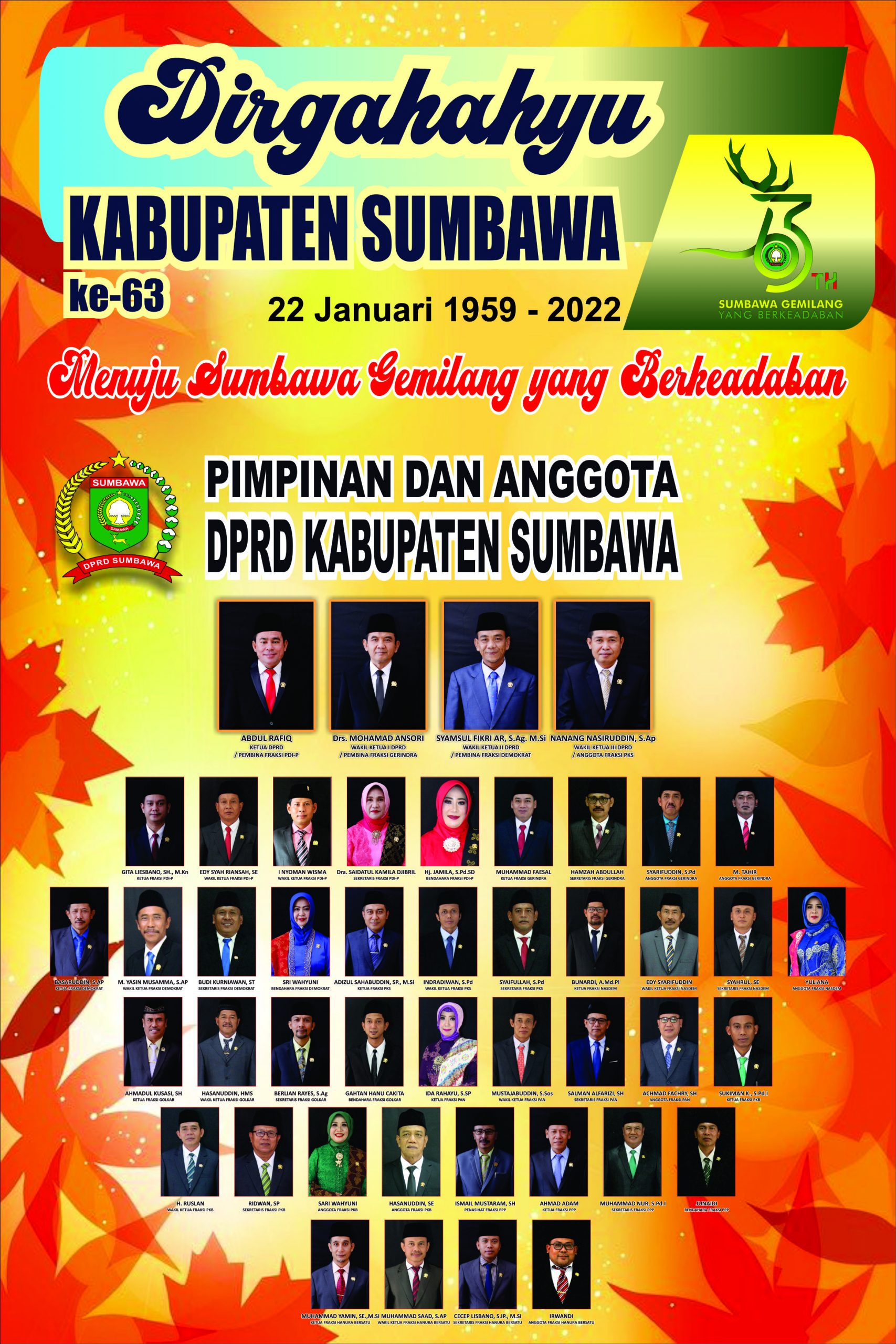 PIMPINAN DAN ANGGOTA DPRD KABUPATEN SUMBAWA MENGUCAPKAN DIRGAHAYU KABUPATEN SUMBAWA KE-63 Januari 19, 2022Januari 19, 2022oleh zensumbawa-744 Dilihatoleh zensumbawa SUMBAWA BESAR, 19 JANUARI 2022 Post Views: 744 Jangan LewatkanWabup Ansori Minta Dukungan Mahdalena untuk Realisasinya Madrasah Terintegrasi di AlasWujudkan Kemandirian Fiskal, Sumbawa Alokasi 100 Miliar untuk Penguatan BUMDWabup Ansori Tegaskan Arah Kebijakan Lewat 5 RanperdaCegah Bullying, Komisi IV DPRD Sumbawa Dorong Sekolah Perkuat TPPK dan Edukasi Orang TuaPemkab Sumbawa dan BNPB Perkuat Sinergi, Fokus Pemulihan Pascakebakaran di Alas
