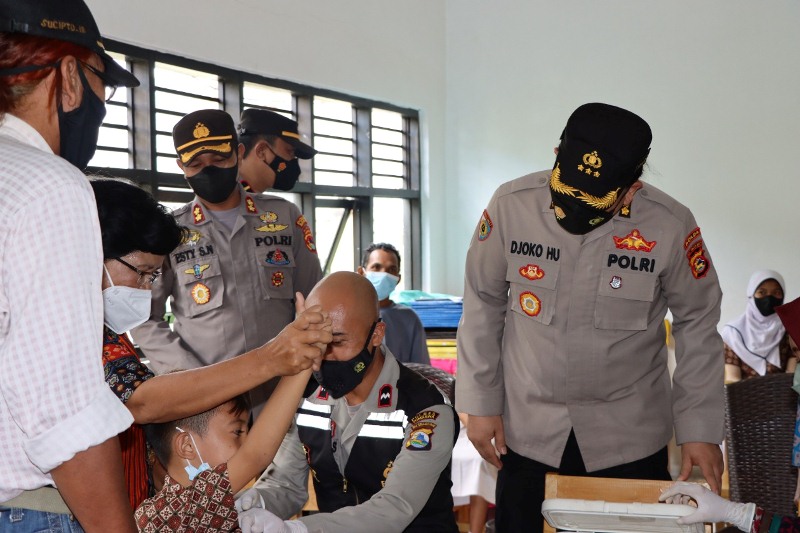 SUMBAWA—Irwasda Polda NTB, Kombes Pol. Djoko Hari Utomo, SIK., M.Si., meninjau secara langsung pelaksanaan vaksinasi anak usia 6-11 tahun di Kabupaten Sumbawa, Kamis (20/01/2022).