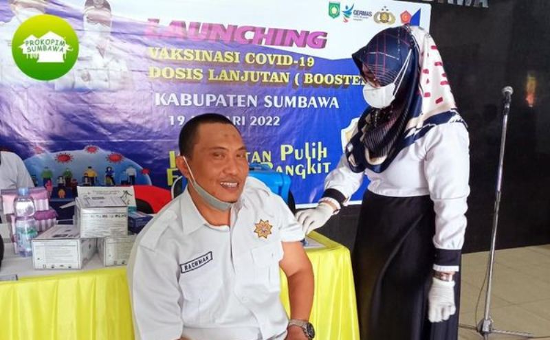 SUMBAWA—Sejumlah pejabat di Kabupaten Sumbawa mengikuti vaksinasi booster yang digelar serentak di seluruh wilayah NTB. Hal ini setelah Pemerintah Provinsi NTB resmi meluncurkan vaksinasi Covid-19 dosis lanjutan atau vaksinasi booster pada Rabu, 19 Januari 2022.