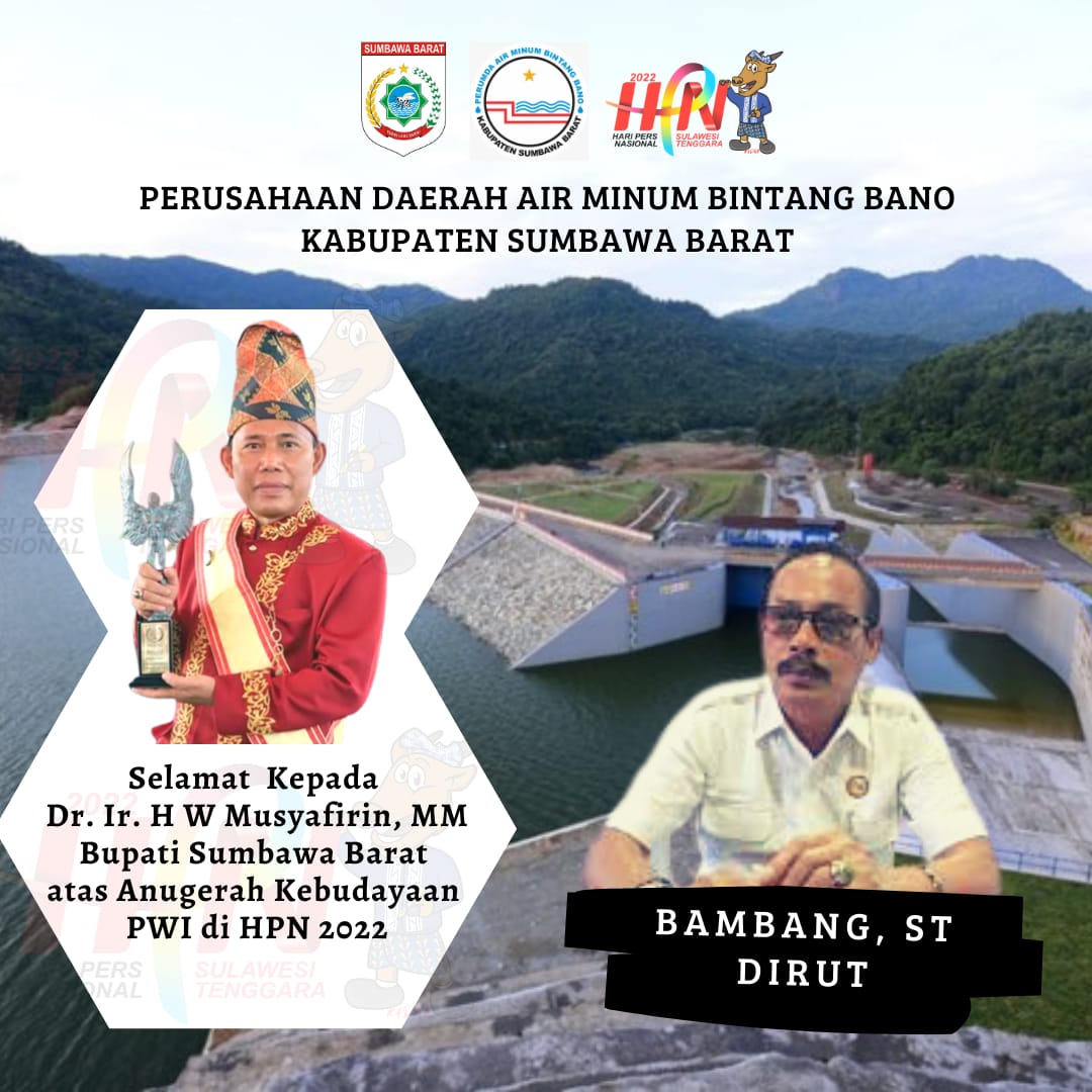 PDAM BINTANG BANO KSB MENGUCAPKAN SELAMAT KEPADA BUPATI SUMBAWA ATAS ANUGERAH KEBUDAYAAN DARI PWI Februari 11, 2022oleh zensumbawa-441 Dilihatoleh zensumbawa SUMBAWA BARAT, 11 FEBRUARI 2022 pada Post Views: 441 Jangan LewatkanKoperindag dan Dikbud Bersinergi Tata Kawasan SMPN 3, Kontainer Sampah Dipindah dan Pedagang DitertibkanPimpin Upacara Paripurna, Ketua DPRD Sumbawa Tekankan Sinergi Antar LembagaMenuju NTB Lumbung Pangan Nasional, H. Zohran Desak Pusat Fokus Bangun Irigasi di SumbawaSumbawa Jadi Sentrum Ketahanan Pangan, Bupati Sinergikan UPLAND dan Sumbawa Hijau LestariBupati Sumbawa Temui Tim Hotman Paris 911, Sampaikan Terima Kasih atas Pendampingan untuk Radit