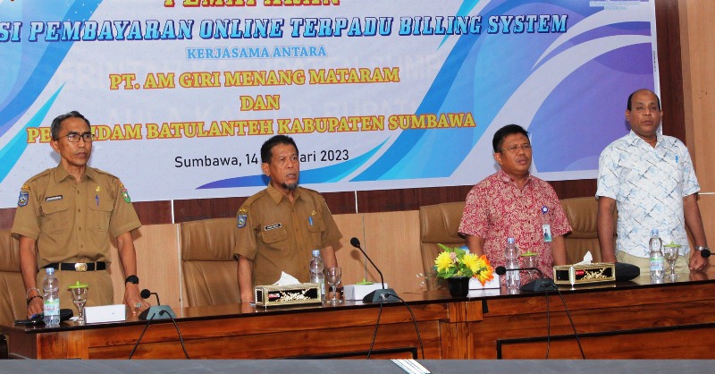 SUMBAWA BESAR, samawarea.com (15 Februari 2023)–Perumdam Batulanteh Sumbawa menjalin kerjasama dengan PT Am Giri Menang terkait Aplikasi Pembayaran Online Terpadu Billing Sistem. Untuk mengetahui lebih jelas dari kerjasama ini, digelar kegiatan pemaparan penggunaan aplikasi tersebut. Kegiatan ini dibuka secara resmi oleh Bupati Sumbawa diwakili Sekretaris Daerah, Drs. H. Hasan Basari, MM., Selasa (14/2).