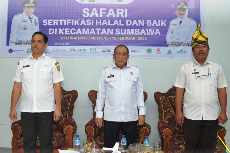 Kadis Koperindag Sumbawa, Dr. Dedy Heriwibowo, S.Si., M.Si., melaporkan bahwa Safari Sertifikasi Halal dan Baik ini merupakan salah satu program unggulan Pemda Sumbawa, sekaligus visi ke depan Pemda dalam mencanangkan program sertifikasi halal agar produk-produk UMKM bisa berdaya saing.