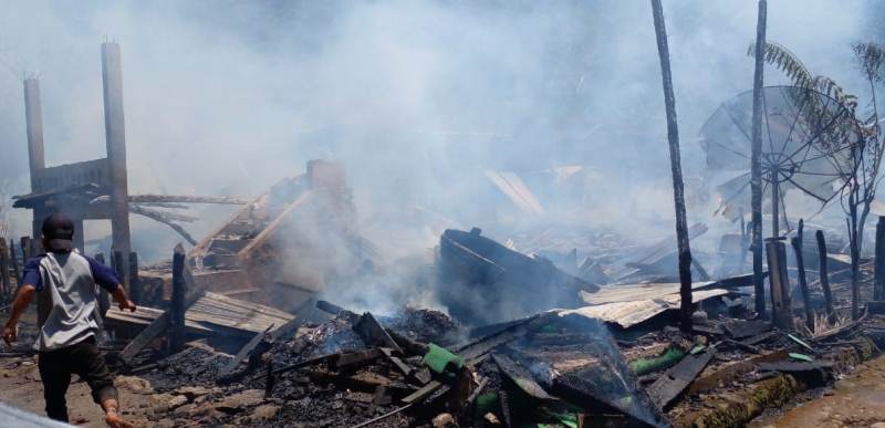 Informasi sementara dari Taruna Siaga Bencana (Tagana) Kabupaten Sumbawa, tiga rumah yang terbakar ini milik Sirat, Vira dan Papun Wati. Tidak ada harta benda yang berhasil diselamatkan.