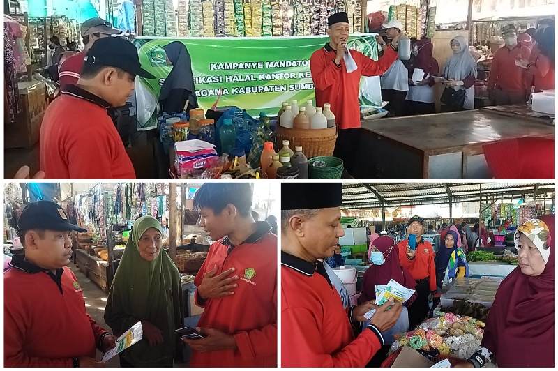 SUMBAWA BESAR, samawarea.com (19 Maret 2023)–Kantor Kementerian Agama Kabupaten Sumbawa terjun ke Pasar Seketeng dan Pasar Brang Biji, Sabtu (18/3) pagi. Hal ini dilakukan untuk melakukan Kegiatan Kampanye Mandatori Halal, dalam rangka menyukseskan program Indonesia Wajib Halal 2024.