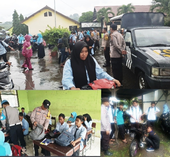 Barang bawaan seperti tas siswa digeledah. Demikian dengan jok sepeda motor juga diperiksa. Saat dilakukan pemeriksaan, polisi didampingi Guru BP sekolah tersebut. Selain merazia, jajaran setempat juga melakukan sosialisasi keselamatan berlalu lintas dan himbauan kamtibmas.