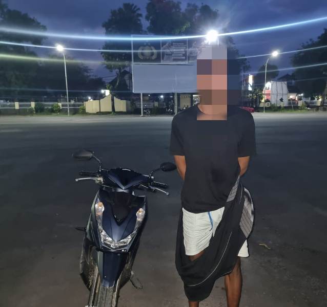 Terduga ditangkap di Desa Pengengat, Kecamatan Pujut, Kabupaten Lombok Tengah. Dari hasil interogasi awal, terduga mengakui perbuatannya. Dia beraksi bersama rekannya inisial R yang masih dalam pengejaran. (SR)