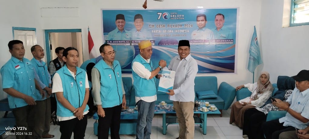 SUMBAWA BESAR, samawarea.com (30 Mei 2024) – Partai Gelombang Rakyat (Gelora) Indonesia Kabupaten Sumbawa kembali menerima pendaftaran bakal calon bupati dan wakil bupati. Kali ini, Sudirman, S.IP. yang datang di Rumah Gelora, Kamis (30/5) sore tadi.