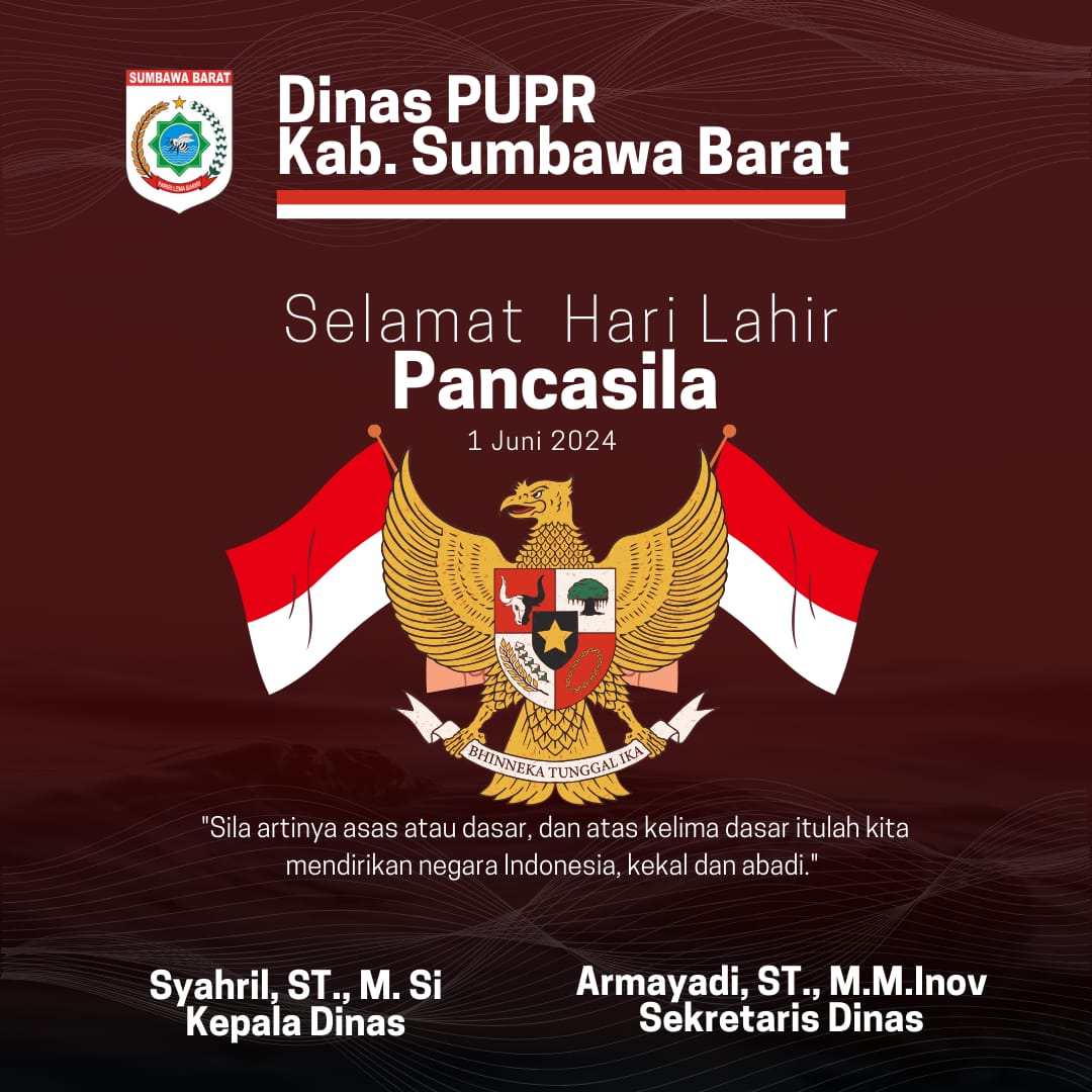 Kepala Dinas Pekerjaan Umum dan Perumahan Rakyat ( PUPR) Kabupaten Sumbawa Barat Beserta Jajaran Mengucapkan Selamat Hari Lahir Pancasila ” Mari Kita Jiwai Pancasila Sebagai Dasar Bernegara”