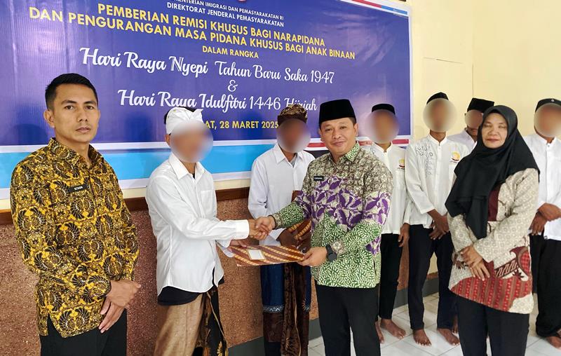 SUMBAWA BESAR, samawarea.com (30 Maret 2025) – Dua orang warga binaan Lembaga Pemasyarakatan Kelas IIA Sumbawa Besar menerima remisi khusus dengan potong masa penahanan selama 1 bulan. Remisi ini diberikan pada momentum Hari Raya Nyepi Tahun Baru Saka 1947.