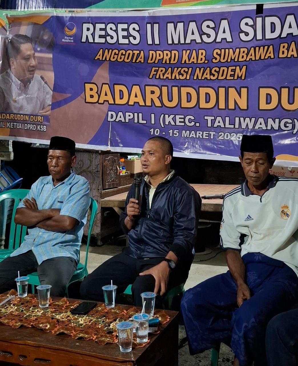 Sumbawa Barat. Samawarea.cim ( 15/3/2024)Wakil Ketua DPRD Sumbawa Barat, Badaruddin Duri, S.Psi., menggelar reses II masa sidang II pada Sabtu malam, 15 Maret 2025. Kegiatan ini berlangsung selepas salat tarawih di Lingkungan Menala Baru, Kelurahan Menala, Kecamatan Taliwang.