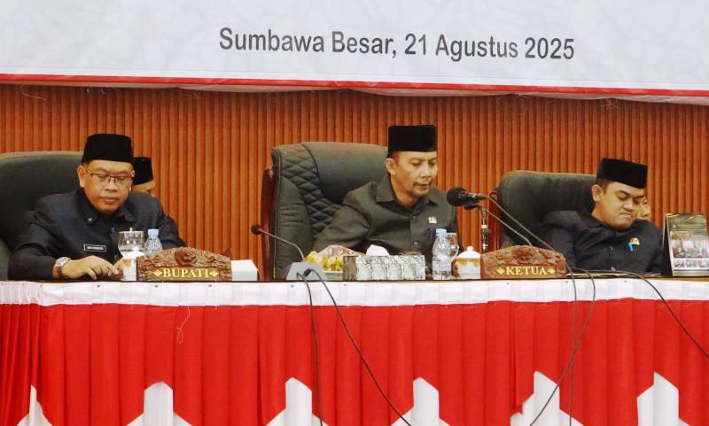 SUMBAWA BESAR, samawarea.com (21 Agustus 2025) – Rapat Paripurna DPRD Kabupaten Sumbawa yang berlangsung, Kamis, 21 Agustus 2025, beragenda penyampaian pandangan umum fraksi-fraksi terhadap dua Rancangan Peraturan Daerah (Ranperda) dari Pemerintah Daerah Kabupaten Sumbawa Tahun 2025. Mewakili Bupati, Sekretaris Daerah Kabupaten Sumbawa, Dr. H. Budi Prasetyo, S.Sos., M.AP., mendengarkan secara seksama tanggapan fraksi tanggapan.