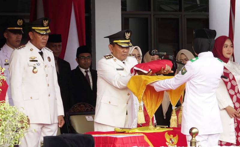 Momen yang penuh haru ini juga melibatkan Pasukan Pengibar Bendera (Paskibra), yang kembali menunjukkan dedikasi dan kebanggaan yang luar biasa. Komandan Pasukan, Hary Ade Wibowo, S.Psi, memimpin barisan dengan penuh tanggung jawab. Salah satu momen paling memukau adalah ketika Khansa Aulia Putri, siswi SMA Negeri 2 Sumbawa Besar, dengan penuh keanggunan membawa baki bendera Merah Putih.