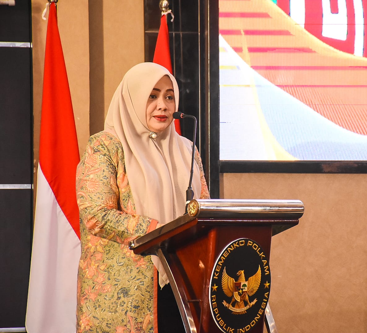 Wakil Gubernur NTB, Hj. Indah Dhamayanti Putri, menyambut para peserta sekaligus mengumumkan bahwa IDI NTB naik menjadi 76,37, menunjukkan peningkatan kualitas demokrasi di daerah.