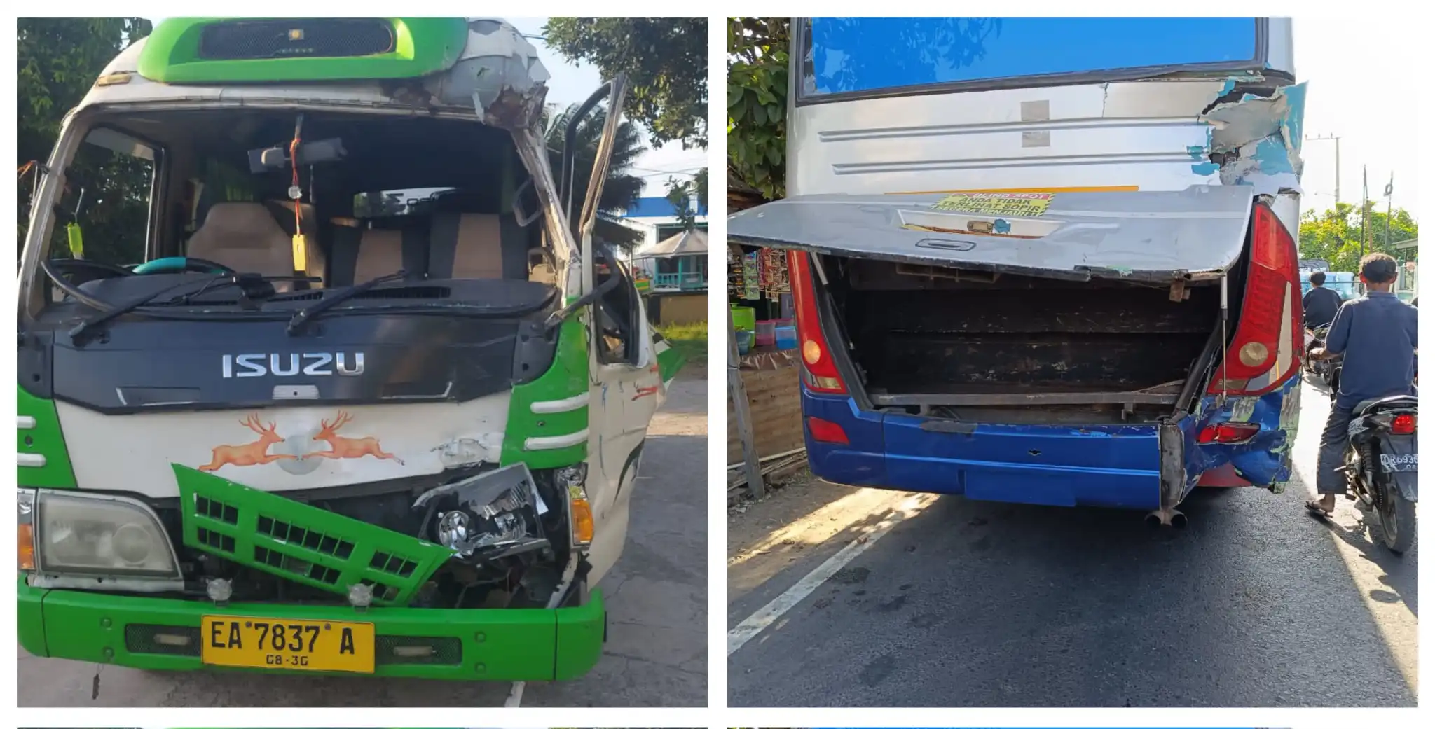 SUMBAWA BESAR, samawarea.com (3 November 2025) – Kecelakaan lalu lintas terjadi di wilayah Kecamatan Utan, tepatnya di perempatan pasar sebelum jembatan, Senin (3/11) sekitar pukul 15.00 Wita. Sebuah Bus Travel Sumbawa Utama menabrak bagian belakang Bus Fajri Jaya jurusan Sumbawa–Taliwang hingga menyebabkan lima orang terluka serius, termasuk Camat Sumbawa, Drs. Iwan Sofian.