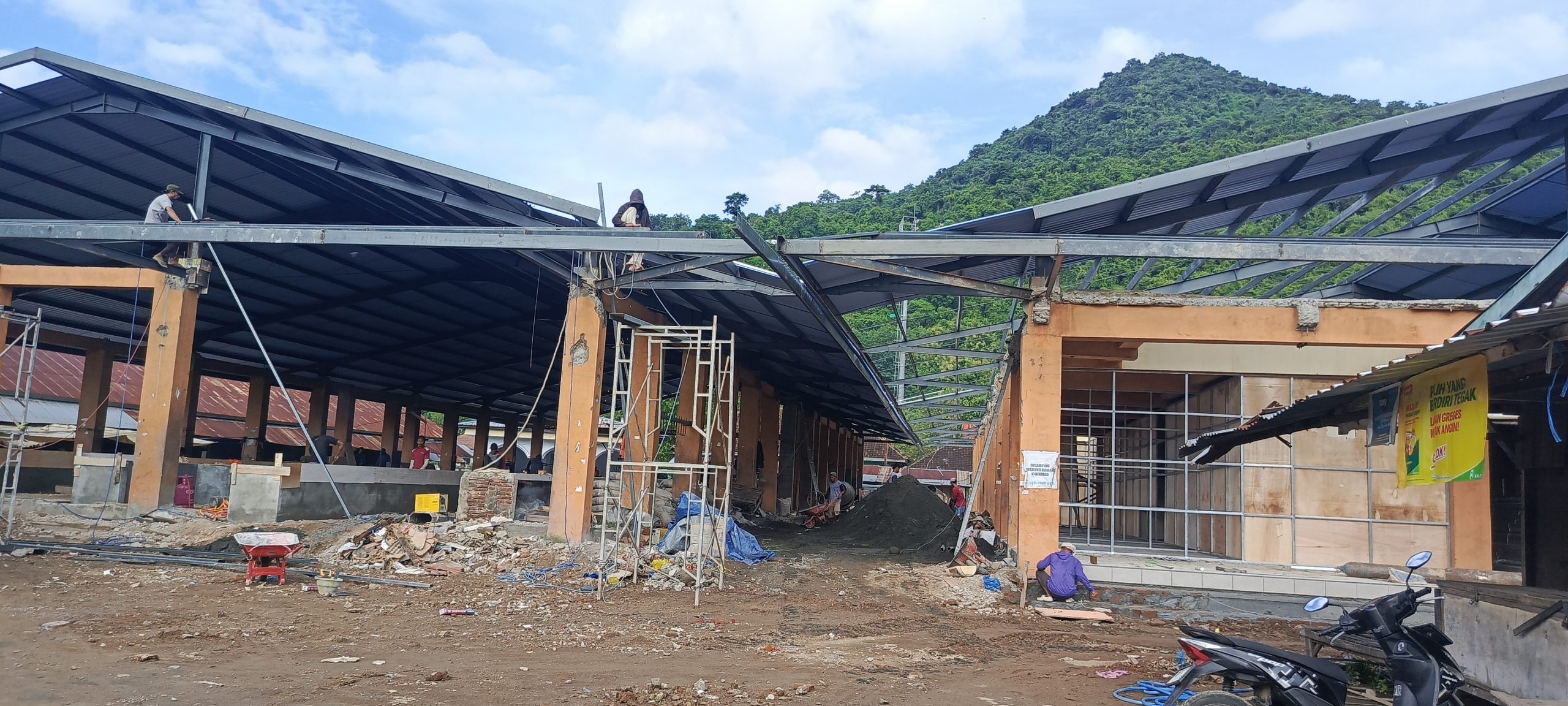 Hasil pantauan media ini di lapangan Senin 05 Januari 2026, CV. Anra Wijaya Perdana sedang mengerjakan 2 bangunan, bangunan utama pekerjaan rehab, yang mengubah bagunan dari lantai dua menjadi lantai satu, saat ini progres pekerjaannya masih ada sebagian atap belum selsai, rehap area penjualan ikan dan danging, dan ada juga sebagian sedang mengerjakan ruko ruko.