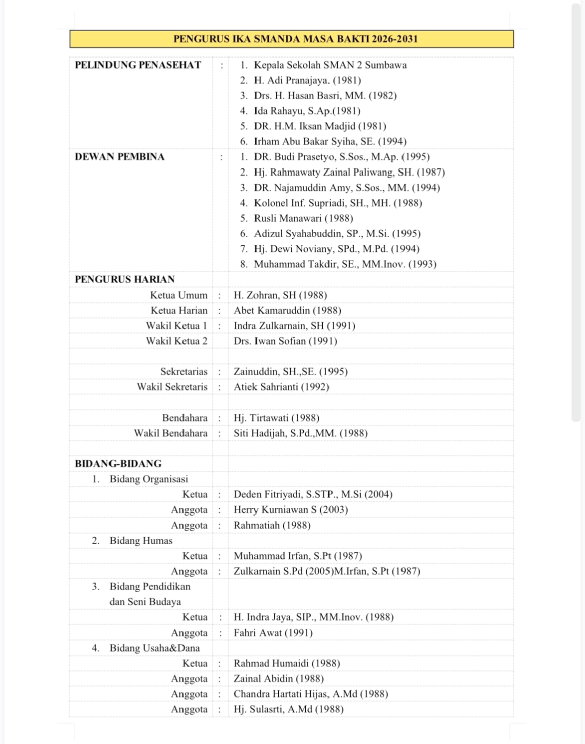 “IKA SMANDA adalah rumah bersama. Organisasi ini hanya akan hidup dan berkembang jika diisi dengan kebersamaan, keikhlasan, dan semangat pengabdian,” tegasnya.