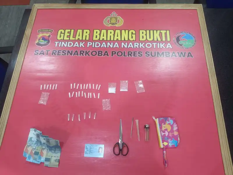 Selain itu, tim juga mengamankan sejumlah barang bukti lainnya, yakni satu dompet kecil warna merah muda, dua skop plastik, satu gunting, satu korek gas, serta uang tunai sebesar Rp 250 ribu yang diduga merupakan hasil transaksi narkoba.