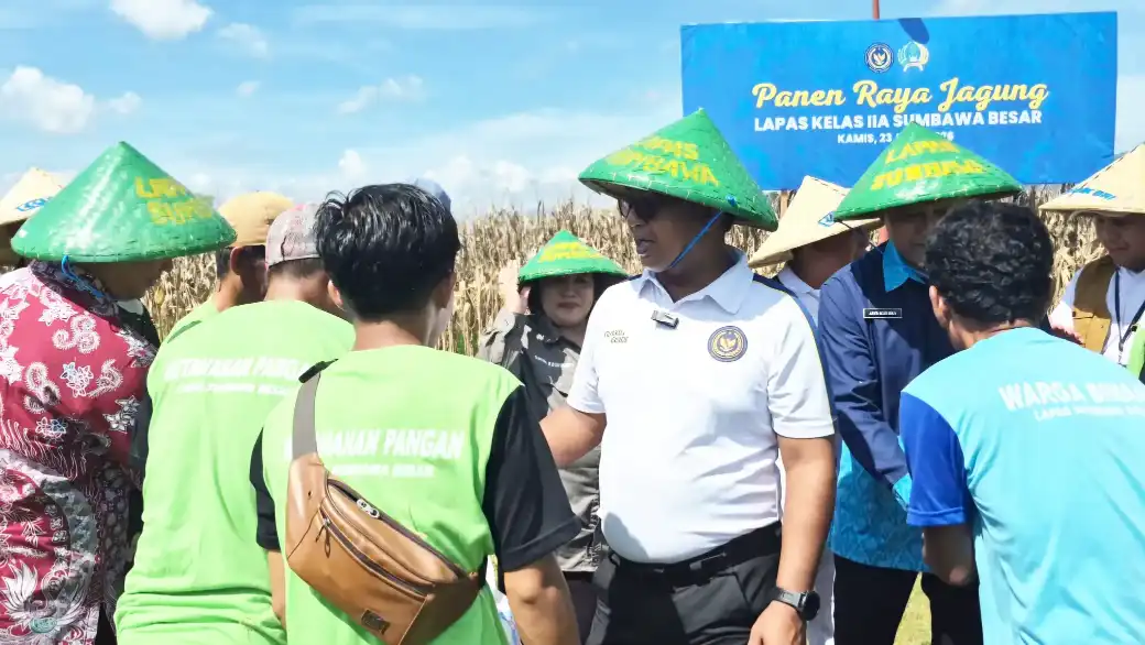 SUMBAWA BESAR, samawarea.com (23 April 2026) – Lapas Kelas IIA Sumbawa Besar Kanwil Ditjenpas NTB melaksanakan kegiatan panen raya jagung bersama warga binaan di lahan Sarana Asimilasi dan Edukasi (SAE) Ai Maja seluas 15 hektare. Kegiatan dalam rangka mendukung ketahanan pangan nasional ini, merupakan bagian dari program pembinaan kemandirian yang tidak hanya berorientasi pada peningkatan keterampilan, tetapi juga kontribusi nyata terhadap kebutuhan pangan masyarakat.
