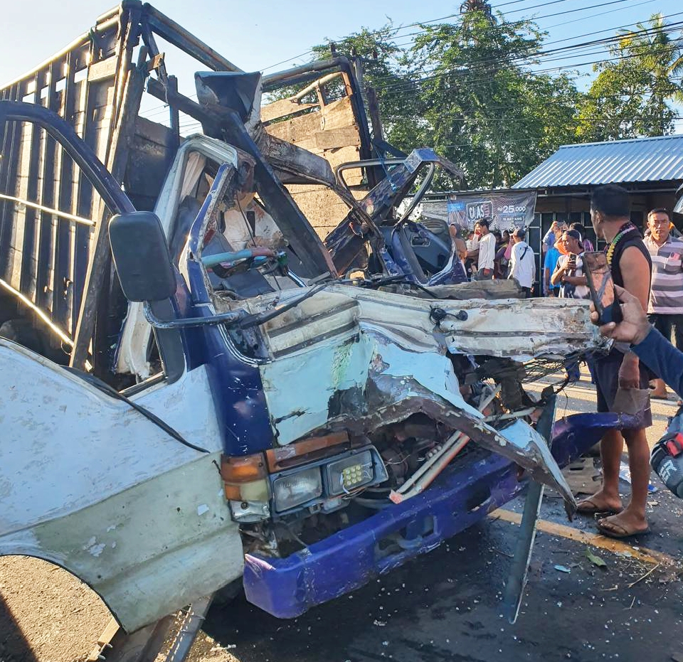 Ketiga kendaraan mengalami kerusakan, terutama truk Mitsubishi Colt Diesel yang rusak parah setelah dihantam dari belakang.