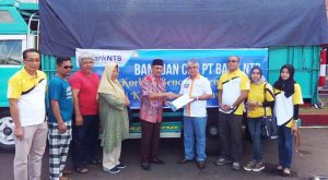 SUMBAWA BESAR, SR (01/09/2018) Bank NTB yang diwakili Direktur Kepatuhan H. Ferry Satrio, SH., MH menyerahkan bantuan sembako untuk korban gempa di