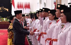 JAKARTA, SR (16/08/2018) Selepas mengukuhkan anggota Pasukan Pengibar Bendera Pusaka (Paskibraka) di Istana Negara, Rabu, 15 Agustus 2018, Presiden Joko Widodo beserta