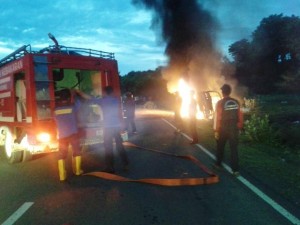 Sumbawa Besar, SR (02/01) Minibus “Putra Sanggar” seketika menjadi arang. Bus bernopol EA 7299 LZ jurusan Dompu—Lombok ini dibakar massa di jalan By